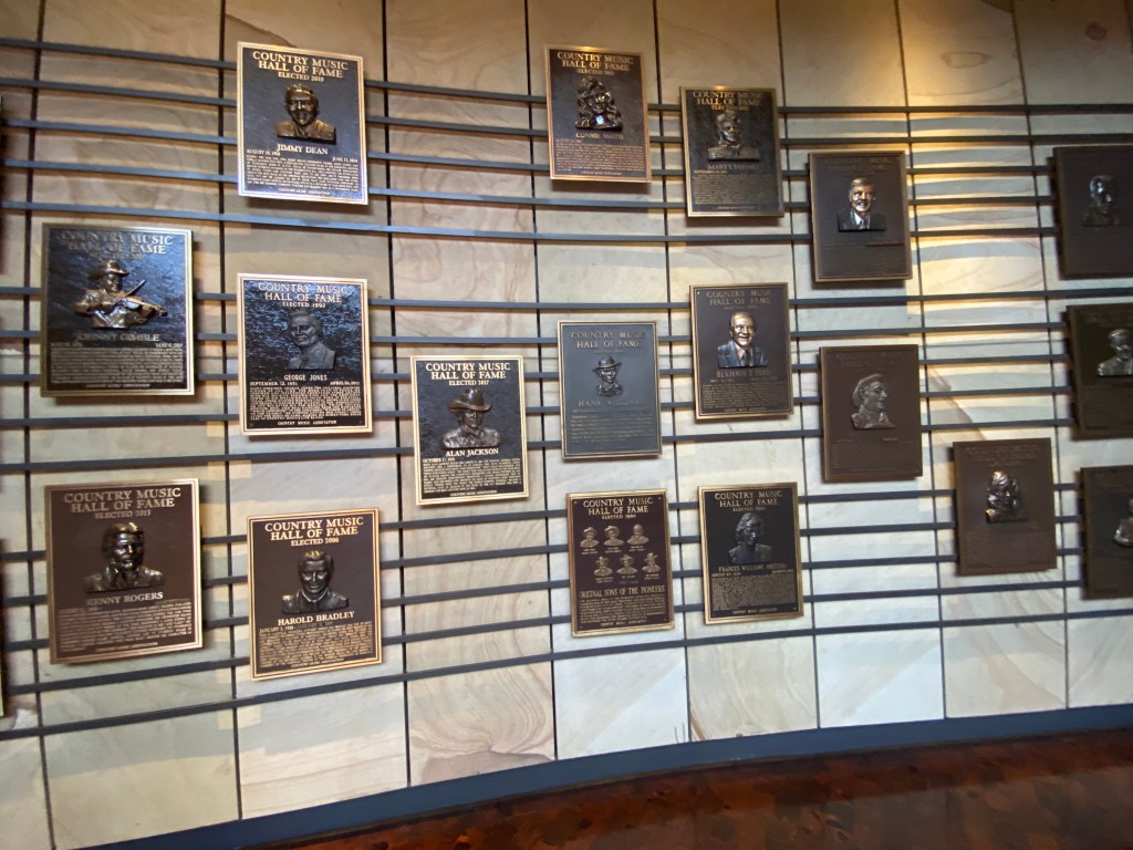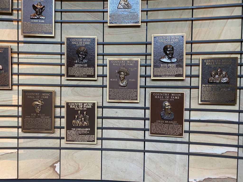 The inductees are arranged on bronze plaques in an unbroken circle to symbolize that there is no hierarchy as no one inductee is better than the other. Each plaque is arranged as a musical notation – a note on a scale along the walls – the visitors are surrounded by musical genius and country stars of all kinds, including Minnie Pearl.