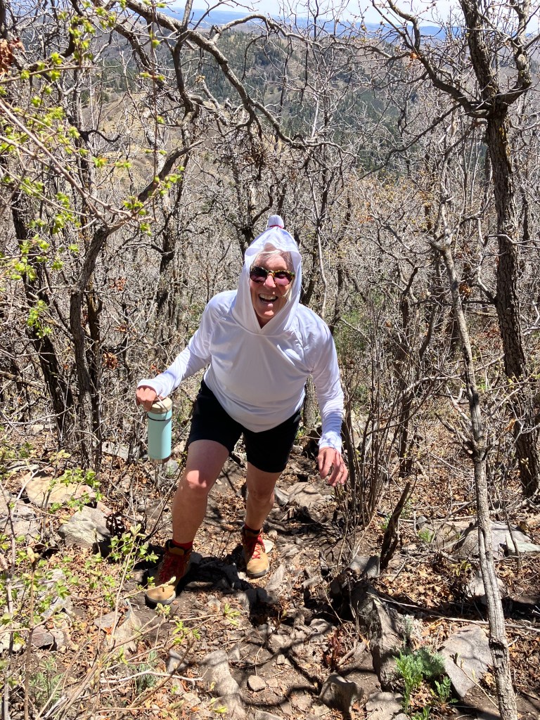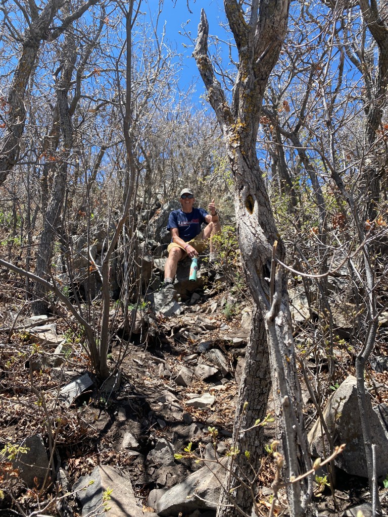 The devastation is real along this dirt way – While the fire was managed – it still took several homes and hundreds and thousands of acres of ponderosa pine and other hardwood trees. How did the fire start? There was a lightening strike, but there was also a power line that went down. It really does only take one spark; it is so very dry around here. Onto the climb.
