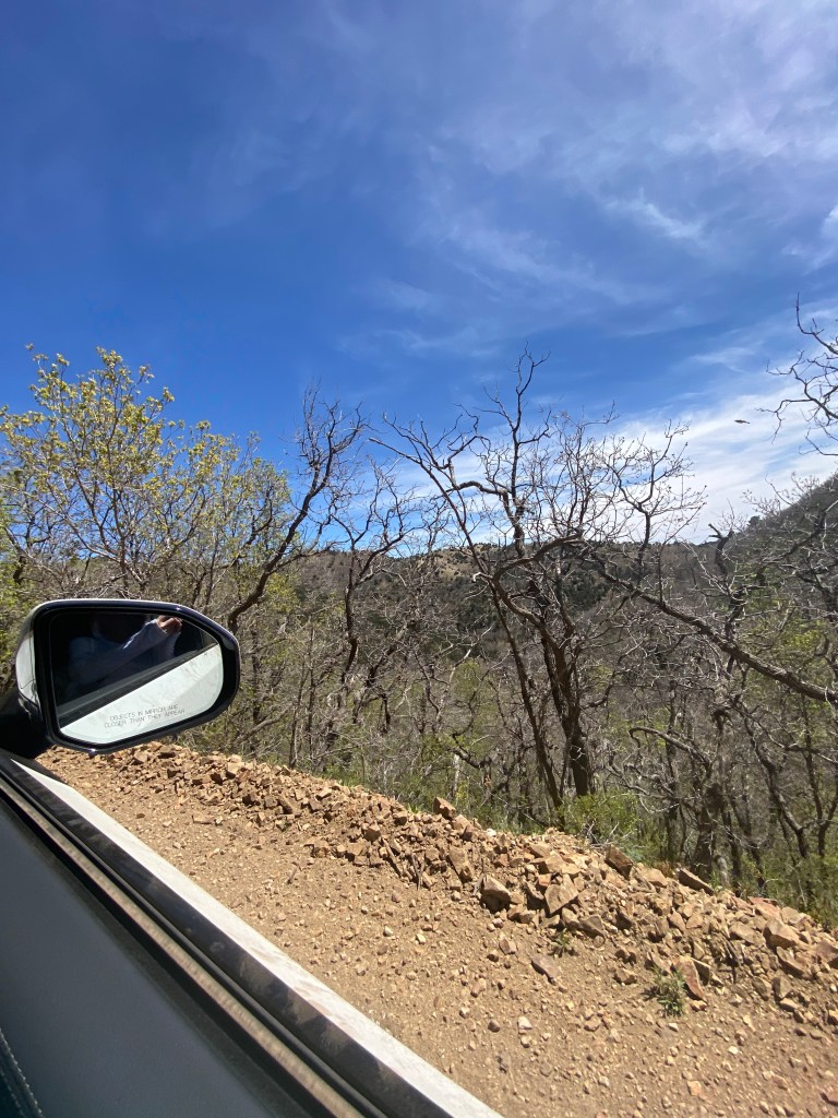 Off for an adventure into the Lincoln National Forest today to hike to a Nogal Summit. It isn’t a long hike nor does it have a high elevation gain; however, the only way to the hike is over a rocky, tippy, and bumpy dirt road with sharp switchbacks up the mountain. The hike doesn’t even start until over 8,809ft.