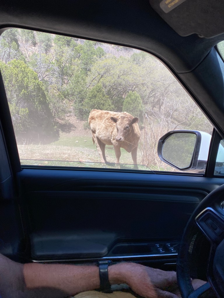Grazing cattle along the very dusty dirt road through private property and into Lincoln National Park – cattle country for sure!