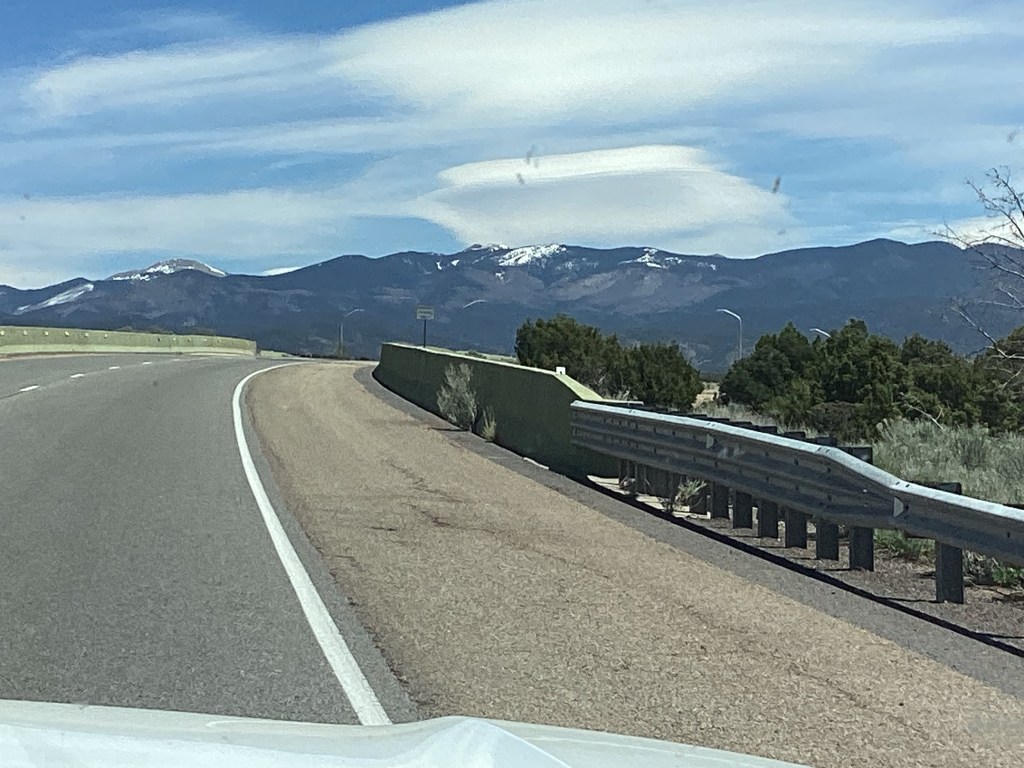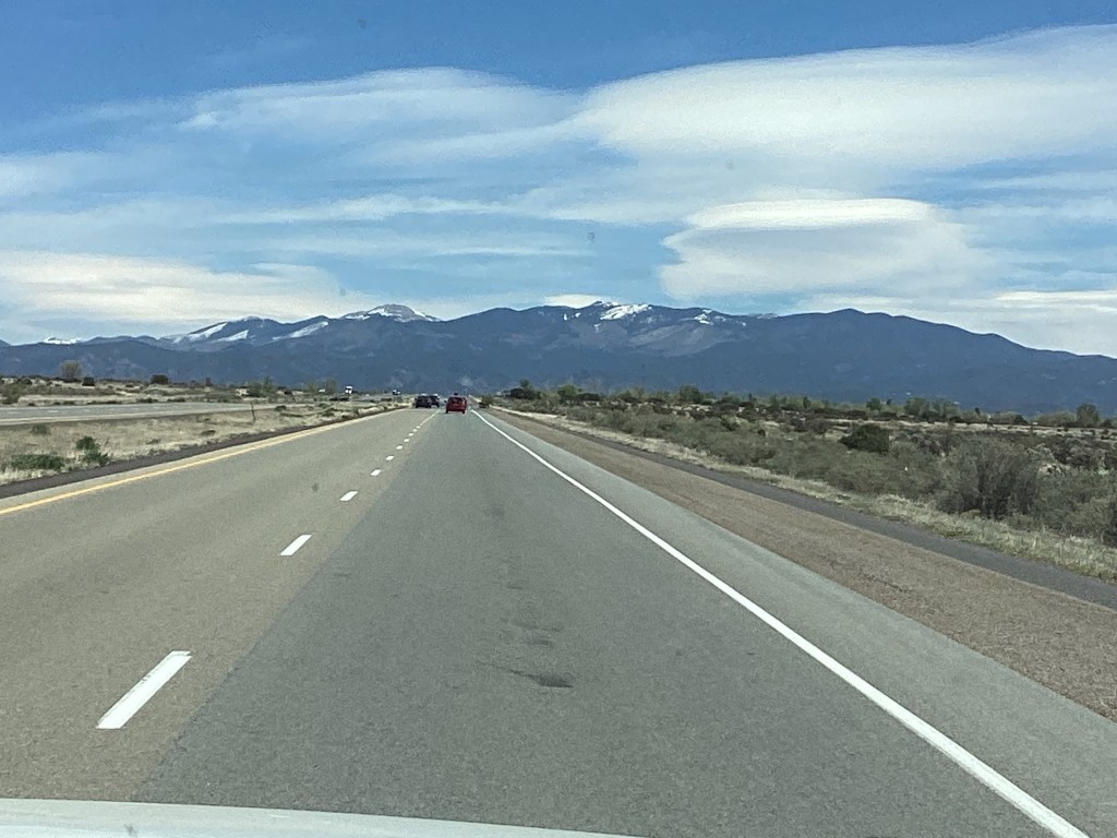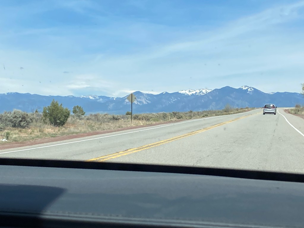 All along the road way today there were breathtaking views that filled the horizon. I tried my best to capture some of the moments. I didn’t capture a single view. However, I did see a theme emerge and looking at all of my attempts to capture the perfect picture, I began to feel as though we were being called forward by these snow capped mountains that turned out to be Taos Ski Valley!
