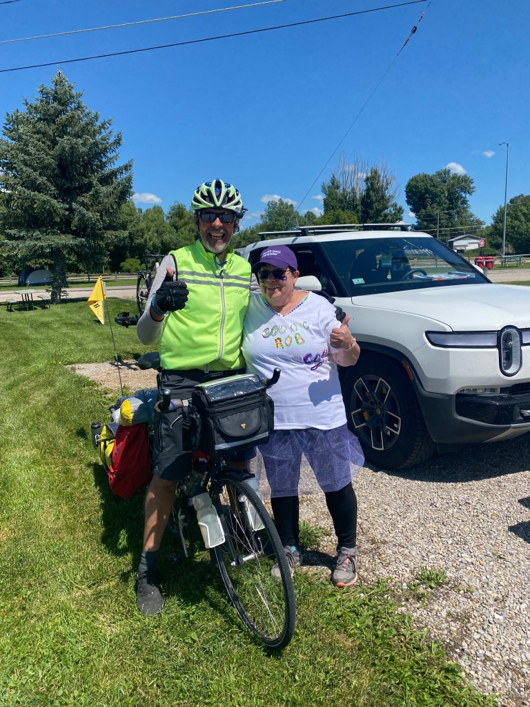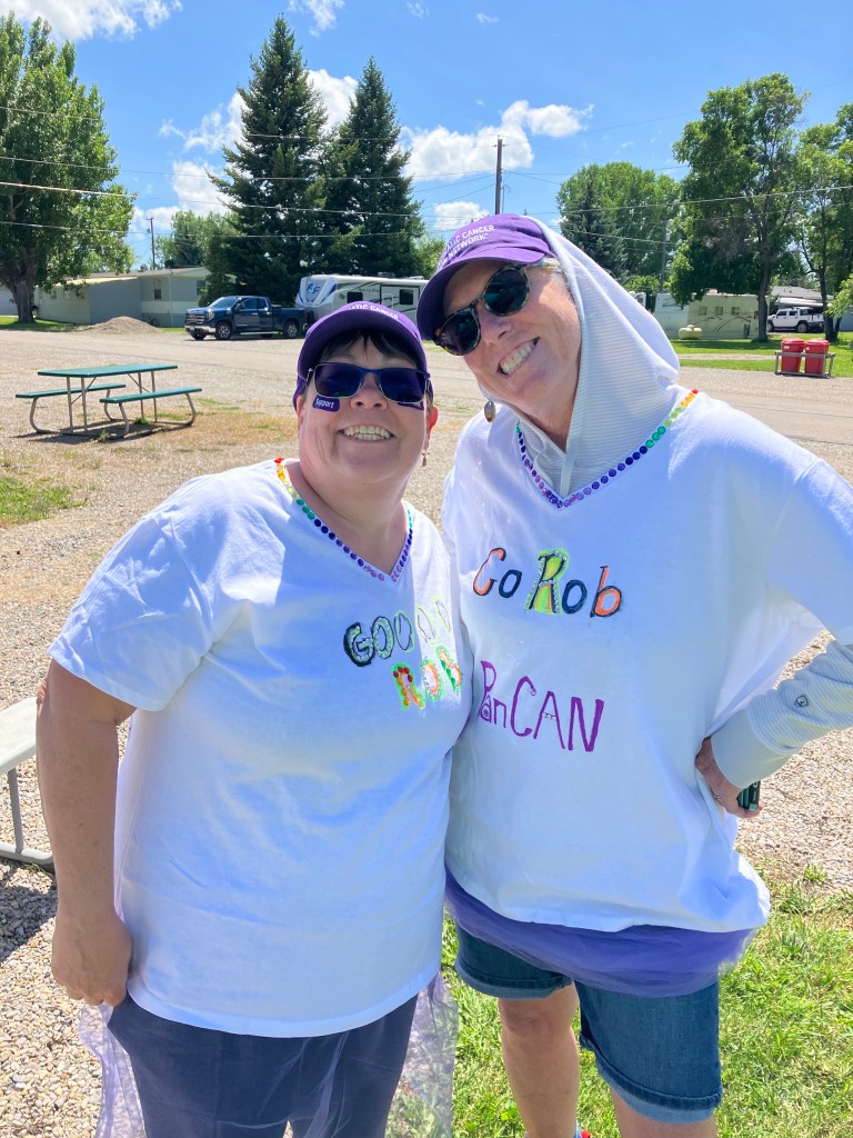 Sue is a champion cheerleader! We had a blast making these t-shirts – and Rob was all smiles when he saw us running and cheering along side him as he entered the RV Park in Lewistown.