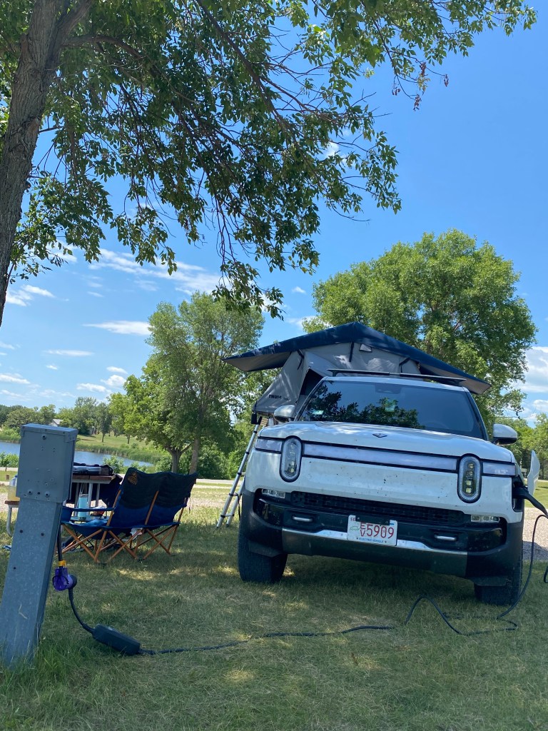 Our home away from home – plugged in and ready to roll onto our next location – Rob followed the bike path on the Central Lakes Trail from here – Linwood Campground on the Red River- and headed south.