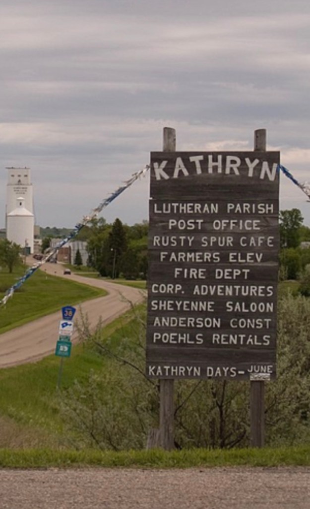 Just another day in the life of a small town in North Dakota named after the daughter of a railroad man. Kathryn has a population of less than 100, and I am going to guess these automobiles are not on display. I was looking for the post office – as you can see I found it.